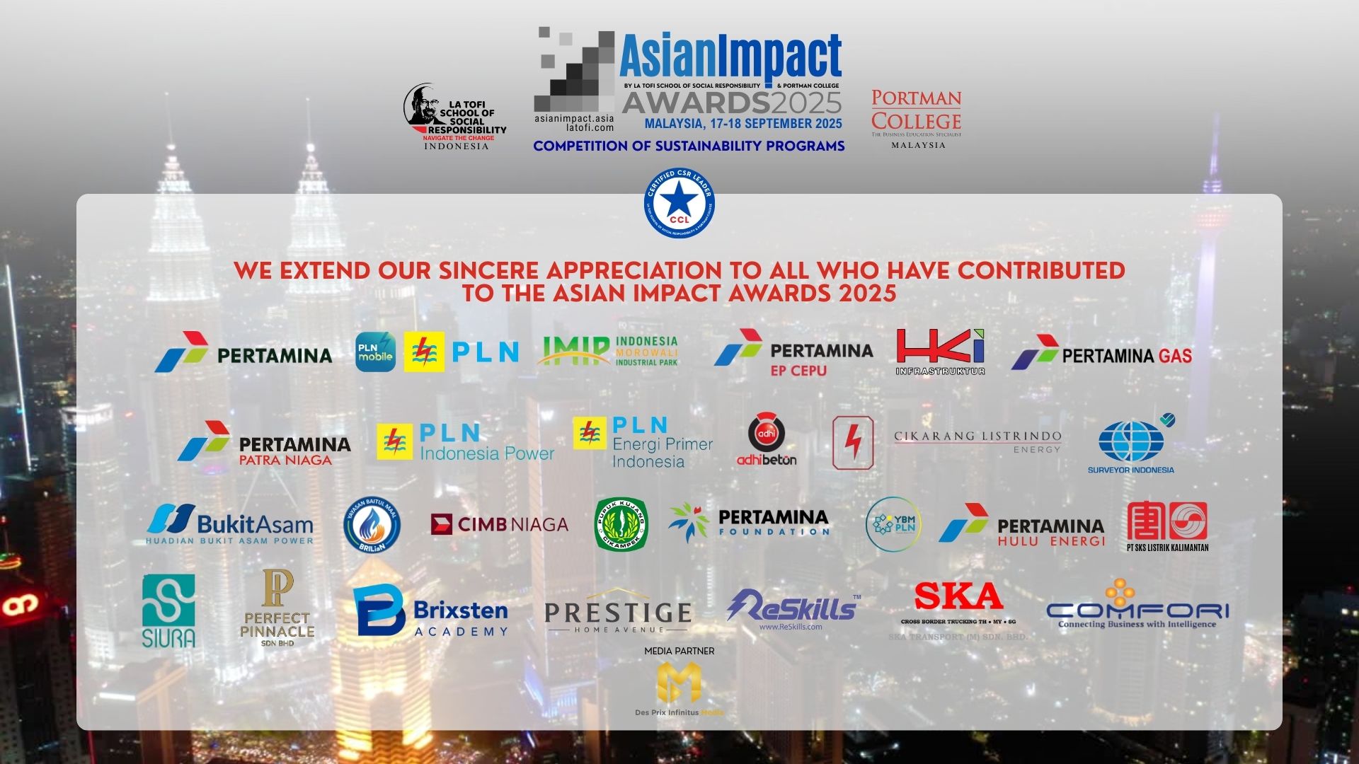 Asian Impact was initiated by La Tofi School of Social Responsibility. In collaboration with PORTMAN College Malaysia. The goal is to help companies or foundations owned by companies to improve the quality of business governance and social and environmental initiatives, so that they have an impact on life together. In addition to awards, Asian Impact is an ESG rating and CSR training institution.